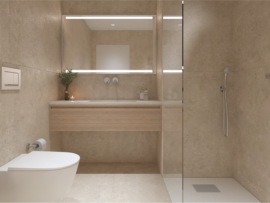 The bathrooms feature modern fixtures and premium finishes, complemented by the warmth of wooden accents, creating a spa-like atmosphere for your personal retreat.