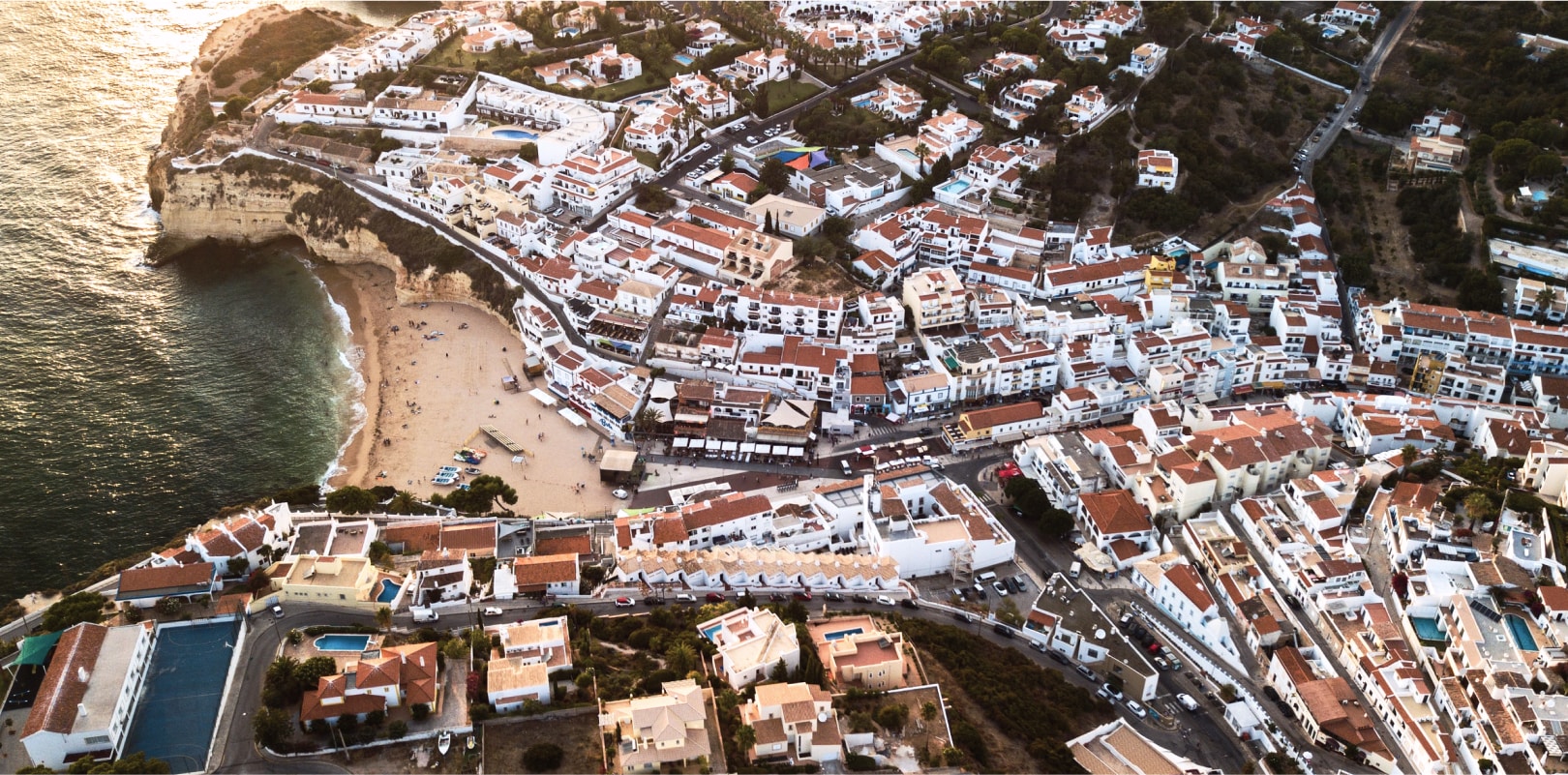 Nestled in the sea cliffs, the picturesque Carvoeiro village with a sandy and sheltered beach is a popular destination for tourists. The village is also surrounded by natural beauty, including the impressive rock formations of Algar Seco and the winding paths that lead to beautiful overhangs and caves.