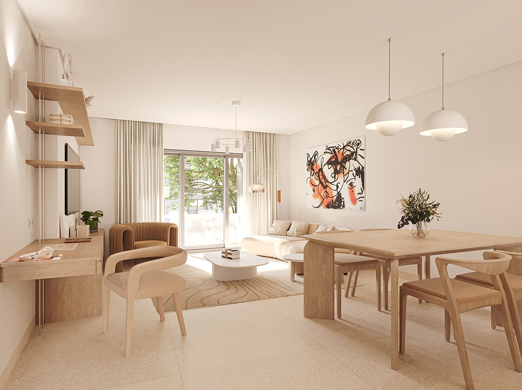 To complete the ultimate turnkey experience, each apartment is meticulously furnished, leaving no detail overlooked. Immerse yourself in the comfort and style of a fully furnished home where every piece has been carefully chosen to complement the contemporary design and provide a sophisticated living environment.